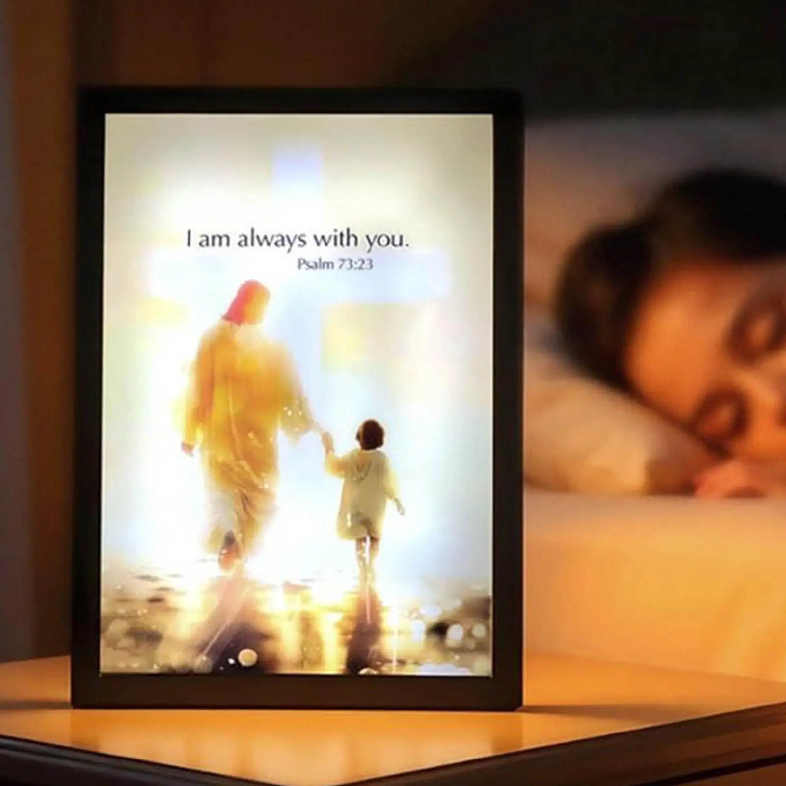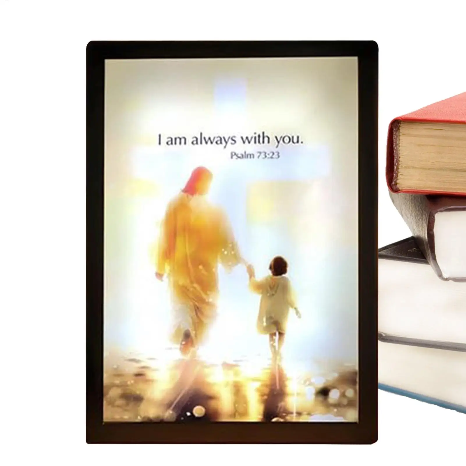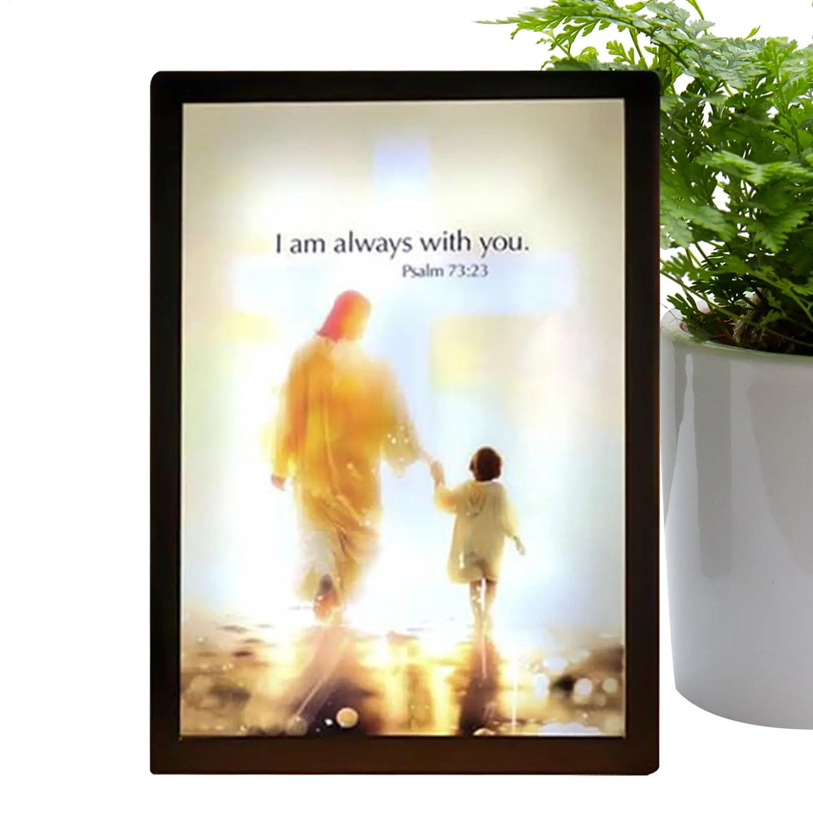 Illuminate your space with a Jesus LED display, featuring 4D light effect art. Provides a soft light that can double as a night light.